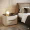 The compact form is balanced by two spacious drawers, making it both visually light and highly functional. Crafted with precision, this bedside table complements upholstered beds, contemporary interiors, and luxury master bedrooms effortlessly.