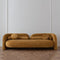 Upholstered in premium suede-finish fabric, the sofa delivers a rich tactile feel and a warm, inviting presence. The integrated cylindrical back cushions and rounded arm contours enhance ergonomic support while maintaining a clean, uninterrupted silhouette.