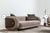 Upholstered in premium textured fabric, paired with leather-finished side panels and subtle metallic detailing, the sofa reflects understated opulence. The deep seat, plush cushioning, and ergonomic proportions ensure relaxed comfort without compromising on design aesthetics.