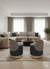Make a bold statement with this luxury modern accent chair from Madera Homes. Featuring a sleek cylindrical silhouette with a gracefully curved backrest, this designer chair blends sculptural elegance with plush comfort. Upholstered in premium soft-touch fabric, the smooth finish enhances its refined appeal, while the brushed metallic base adds a sophisticated contrast and contemporary edge.