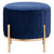 The rich navy velvet upholstery creates a bold yet timeless statement, while the brushed gold metal base adds a glamorous accent and sturdy support. Perfect as a footrest, vanity stool, extra seating, or decorative accent piece, this round ottoman complements living rooms, bedrooms, dressing areas, hotel suites, and upscale lounge interiors.