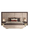 Buratti Bed is designed for refined urban living, where clean aesthetics meet intelligent functionality. This luxury upholstered bed features a wide, panelled padded headboard framed with subtle wooden accents, creating a balanced and architectural look.