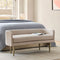 Bring refined elegance to your bedroom with this sleek upholstered bench from Madera Homes. Designed with softly curved arm-style ends and slender metal legs, this piece blends graceful detailing with modern sophistication. The plush cushioned seat offers everyday comfort while maintaining a light, elevated presence at the foot of the bed.